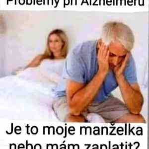 | Roztržitost nebo i ten Alzheimer je nabídnout peníze po sexu vlastní manželce a síla zvyku u manželky pak je, když si ty peníze vezme, přepočítá a připočítá příplatek za orál bez a líbání. | ||