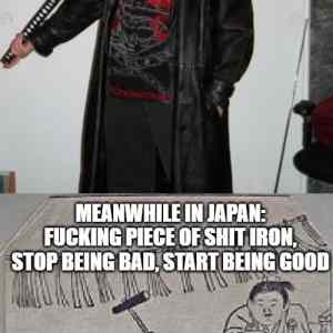 Klasickej hoax, kvalitní meče z Evropy z 15., 16.,17. století jsou daleko lepší, jak do kvalitou materiálu, tak i provedením. Jedinečnost katan spočívá v tom, že Japonci měli nedostatek zeleza a navíc ještě dost nekvalitního, takže museli vyvinout jedinečný, a s tehdejší technologie velmi pracný a dlouhý postup, aby ty meče vůbec za něco staly. Nicméně proti kvalitnímu dvourucaku ze středověku by katana neměla šanci. |