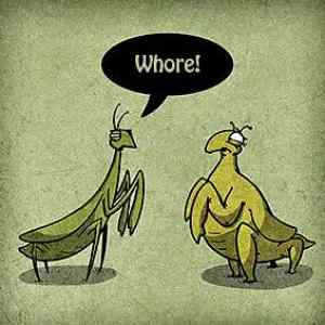 je tlustá. A protože kudlanky samičky při páření, řekněme - nejsou to lidi - požíraj samečka, dá se říct, že tlustá kudlanka je kurvva |
