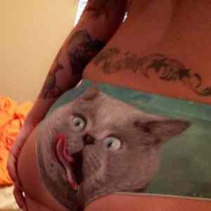 | A možno to len skresľuje jej prdel a menšia veľkosť spodného prádla. Každopádne sa olizuje, takže cíti rybu. | ||
