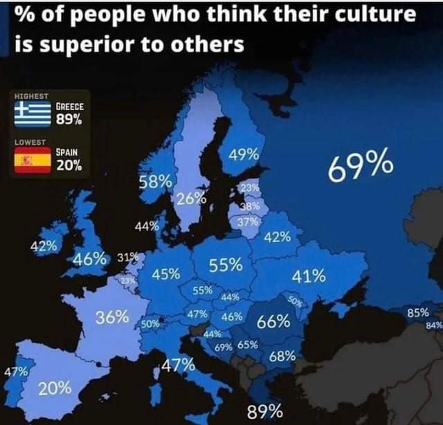 55% Čechů si myslí, že jejich kultura je nadřazená. Zbytek to ví. |