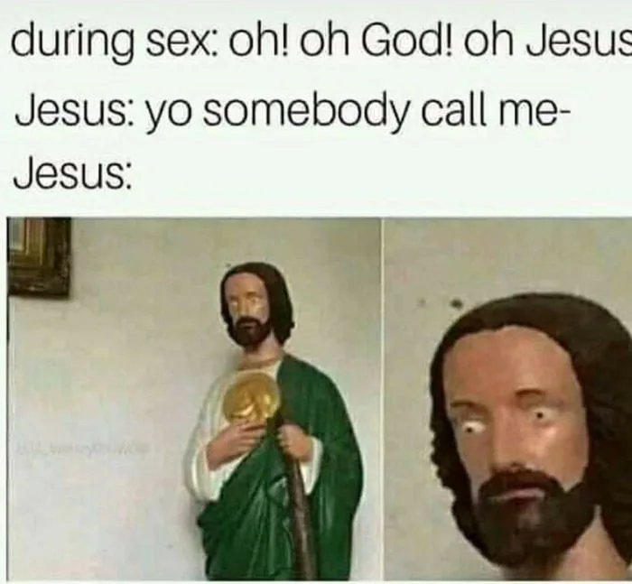 | Ehm, ehm, ehm. Mám pre vás zlé správy. To nie je Ježiš, ale jeho bratranec a Ježišovu podobizeň má na tej medaile na hrudi. | ||