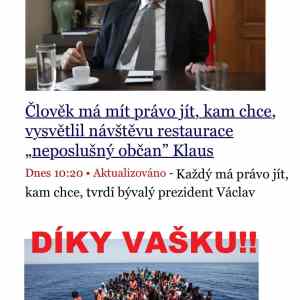 Začínám toho Klause mít rád, když vidím jak začíná vadit nekomunistickým bolševickým libtardum. Jinak souhlasím, člověk má mít právo jít kamkoliv pokud mini v té zemi ve které je ctít její zákony, chodit do práce nebo jinak zkrášlovat životní prostředí a neziskovkam se do toho nepočítá a platí daně v dané zemi a ne na Kypru. |