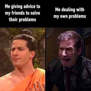 Heheh kazdy je strasne mudry ked sa nejedna o jeho problemy...najviac milujem hlasky typu povznes sa nad to, zabudni na to, a mas sa asi moc dobre ked ta trapia taketo veci...od cloveka ktory potom o tyzden zuri a ide sa vesat kvoli o 90% mensejkokotine |