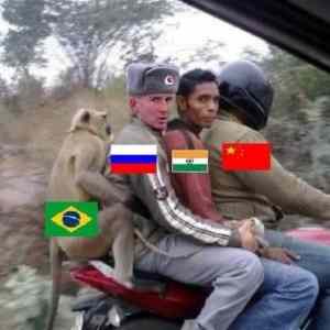 MAP: Pravda, na té motorce by měl jet jedině Indie a Čína, zbytek v zavěsu na provaze za motorkou protože jejich příspěvek do BRICS je vuči těm dvěma minimalní, jo a Čína s Indii by měli každý své řídítka. |
