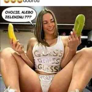 Okurka a banán? Při dnešních cenách? Kolik kurva bere, coura? |