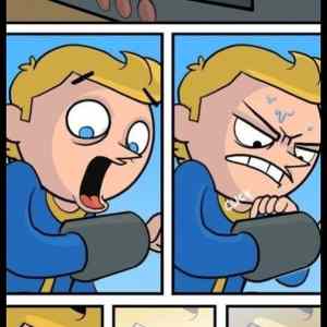Jednou se mi podařilo v hodně debilní zbroji a s hodně debilníma zbraněma vymlátit Vault 15 vedle NCR a Dogmeat zařval.... nechal sem to tak jak to bylo  ((( |