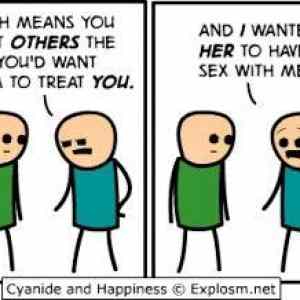 zjednoduseny preklad: "ridim se zlatym pravidlem, chovej se k ostatnim tak, jak chces aby se k tobe chovali oni, a chtel jsem s ni mit sex" "takze jsi ji znasilnil?" | ||