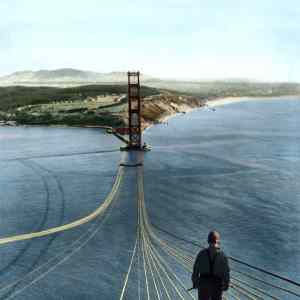 Golden Gate těsně před tím, než dovezli asfalt na vozovku. | ||