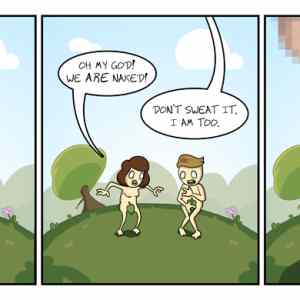 stupid. pokud si az na druhym obrazku uvedomili, ze jsou nazi, omg, proc by meli uz na prvnim fikovy listy? kdyz chci kurva vymyslet vtip, tak u toho myslim, omfg. kdo ma na to pak koukat. |