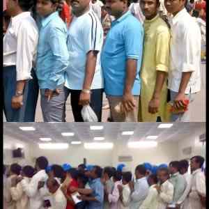 Na těch fotkách to není vidět, ale většinou tam ještě chodí kolem té fronty dvoumetrovej sikh s čaganem a udržuje pořádek |