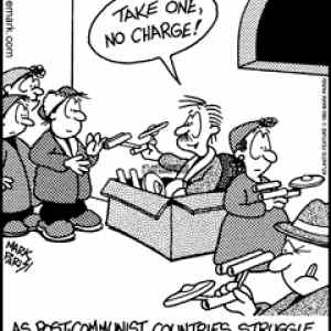 "post-komunisticke staty se stale snazi prijit na kloub (pochopit) novy system 'free enterprise' " coz se v cestine nazyva tusim volny trh (stat nereguluje spolecnosti, funguje system poptavka/nabidka) a nebo to taky muze znamenat "enterprise zadamo" (kosmicka lod ze star-treku) |