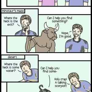 No ale skoro vždycky se tihle zaměstnanci ptají, zrovna když vejdu do obchodu a ani nevím, zda tam budu něco chtít. Nebo když už něco konkrétního potřebuju,tak to nikdy nemají nebo stejně neví kde to je. Poněkud je lituju, oni nejspíš vědí, že zákazník sám od sebe pomoc nepotřebuje, ale od zaměstvanatele maj nařízeno, že se stejně ptát musí. |