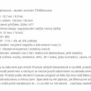 Autor by si měl zajít na Běloruskou základku a zeptat se soudružky učitelky, co to znamená "exponenciální růst", zrovna včera o tom jímavě a fundovaně mluvil bývalý prezident a expert na všechno Kikina Pružinský. |