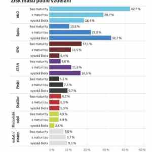 co hovori ten graf? Podla toho ako ho prezentujes. Ale da sa aj tak: cca +/- polovica volicov SPOLU ma vysoku alebo maturitu a cca +/- polovica volicov ANO ma vysoku alebo maturitu. |