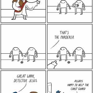 máš to špatně crha.. "nechte toho který je bez hříšné licí formy prvního kámene" "to je ten vrah" "velká práce, detektiv Ježíš" "vždy rád pomůžu to pobřeží hlídat" |
