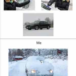 priznam sa raz sa mi stalo ze som sa strasne ponahlal a mal som zasnezene auto tak bo som parkoval pred garazou (taka ta garazova budova plna garazi) lebo v garazi boli ine veci a som vosiel do garaze rozbehol auto a prudko zastavil ..... nejakemu chudakovi takych 30 kg snehu zasypalo dvere ale mne bolo jedno ja som sa ponahlal a bolo cisto !! |