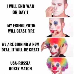 Nesmejte se panu Trumpovi. On skutecne tu valku ukonci za jeden jediny den. Jen na to jeste nemel cas, je na dovoleny v rusky prdeli. |