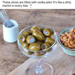 | ** Tyto olivy jsou plněné vodkou želé! Je to jako špinavé martini v každém soustu ** | ||