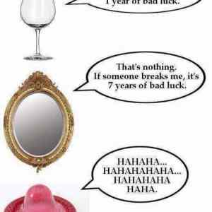 Gembler - co vim tak se to ždycky řikalo o skleněných střepích. O tom zrcadle to samozřejmě znám. Ale že by rozbití skleničky znamenal rok neštěstí, o tom u nás na vesnici LIberec nic nevíme. |