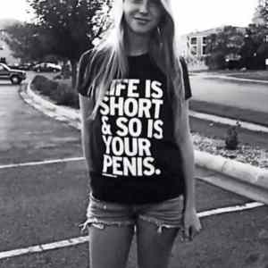 | nejsem tak´zdatny anglispeaker, ale nemá tam bejt life is short & your penis too... takle to je život je kratky a taky je tvůj penis...aspoň myslim ,, to dava spis smysl život je kratky a tak tvůj penis.... | ||