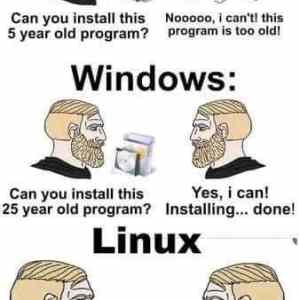 taky bych rekl ze u linuxu spis clovek zadre nez u Windows, protoze chybi spravna verze knihovny, kdezto windowsi soft si vsechno taha sebou (pokud ovsem nejde o neco co pristupuje na hardware, to clovek zadre i na winech). Zato ale na linuxu uz ma clovek nainstalovanou nejnovejsi verzi toho programu co uz 25 let pouziva (treba vim, at je Moolenaarovi zeme lehka). |