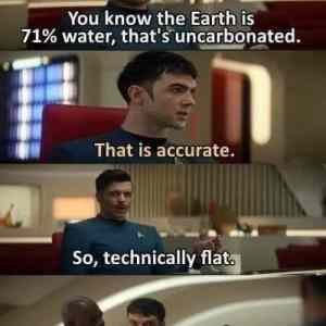 *********** Víte, že Země je ze 71 % tvořena vodou, která není sycená oxidem uhličitým. ******* To je přesné. ********** Takže technicky rovina.