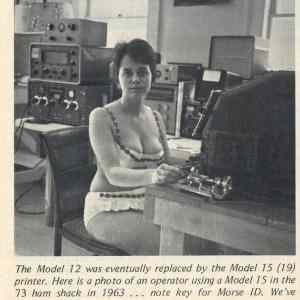 Soudružka maminka Markéty Pekari-Adamové s typickým pekariovským účesem "na igráčka" na návštěvě JZD Slušovice pózuje u prototypu 8bitového počítače řady TNS. |