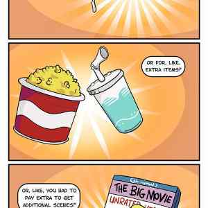 U nás vás nevyhodí v půlce filmu, když si popcorn nebo pití nekoupíte. Film tak vidíte kompletní. Za 3D monitor si u hry také musím připlatit jeho koupí. A na ty 4 hodinové director/whoever's cut verze bych ani moc chodit nechtěl. To si odsedím doma, když se mi film v kině tolik libíl a zajímá mě bonus. Spíše si ale bonus shlédnu na youtube, než si kupovat fyzické médium. Analogie prostě hodně kulhá. |