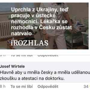 U nás je vynikající (a oblíbený) doktor z ukrajiny na urolce a pak máme asi cca rok celkem sympatickou patoložku. Pokud vím, také s ní nejsou žádné problémy. Oba tu ale už žijí poměrně dlouho a umí dobře česky, občas tedy udělají chybu ve skloňování, ale vždy jim lze dobře rozumět. Ale obávám se, že to jsou spíše vyjimky a také bych byl kvůli enormní míře korupce na ukrajině k uchazečům o práci z ukrajiny velmi podezřívavý. Pepa pointu vystihl dobře narozdíl od růžových snů libtardů. |