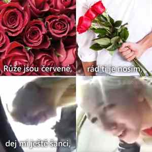 Růže jsou červené, rád ti je nosím, dej mi ješte šanci, dopiči prosím... |