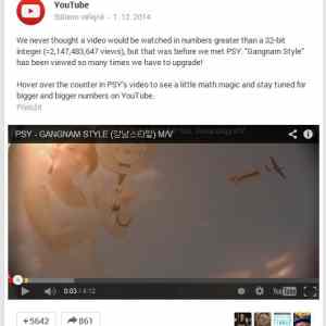 Not trying to be a downer, but if Gangnam Style exceeded MAX_INT views, then it shows that you're using signed numbers for views.. which is silly. Nobody should ever have negative views.. right?