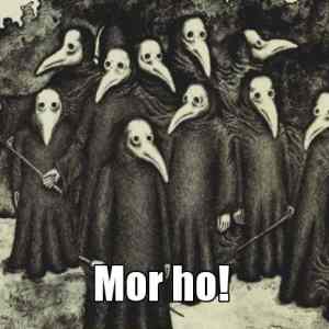 | V těch zobákách měli různé voňavky, aby přebily smrad z všudypřítomných mrtvých. Za měsíc se může hodit. | ||