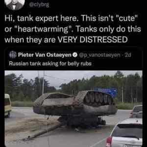| **Ahoj, tady expert na tanky. To není "roztomilé" nebo "potěšující". Tanky to dělají pouze tehdy, když jsou VELMI NERUŠENÉ Pieter Van Ostaeyen @p_vanostaeyen. 2d Ruský tank žádá o drhnutí břicha** | ||
