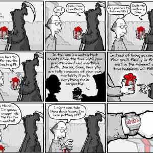U Pratchettova Smrtě by jeho slova nebyly v takovéhle bublině. Ale jinak pěkné. |