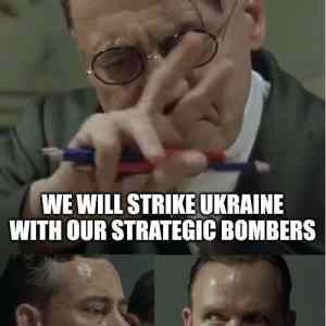 Mein Führer... mein Führer, die strategischen Bomber wurden am Sonntag von den Ukrainern zerstört, aber wir können sie immerhin mit Fahrrädern angreifen. Genauer gesagt, mit dem Fahrradmodell ‚Ukraine‘... |