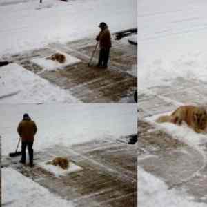| Leave dog!That man must sqeez that snow away!It is his work! | ||