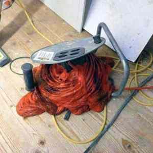 Tím chci říct, že při průtoku elektrického proudu vodičem, se vodič zahřívá. Čím vyšší proud (A), tím vyšší teplota. No a jak dáš vysokopříkonových zařízení na jednu prodlužovačku více, do toho je v místnosti teplo, a šňůra není moc kvalitní, tak se stane toto. |