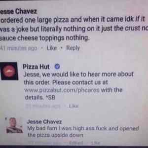 Takto sme mali pizzu zadarmo, kamos to nadrbany zobral, doniesol domov a ked to otvoril tak hned volal a nadaval ze poslali iba cesto. Tak mu poslali novu a ja mu hovorim ze kokot to opacne otvoril. |