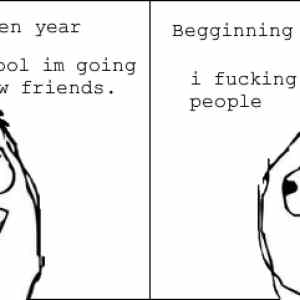 | Šak ale to platí i když jste první rok někde na gymplu... 1. obrázek - na začátku roku a 2. obrázek na konci... | ||