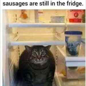 Kočička pochopila, že párky můžou být stále snězeny. A v těch kelímkách je co? Orgány?