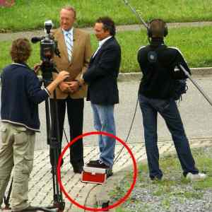 | Nění to spíš proto, aby se pohodlně vlezl do záběru zaírajícího jen horní část těla? | ||