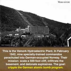 A mám pocit, že to nedali na první dobrou. A že nacistickej jadernej program odepsali až tim potopenim trajektu s barelama D2O. Po první akci se továrna rychle oklepala, druhou akci totálně zvorali a byli pobitý, vyslyšený gestapem a tak podobně a třetí byl ten trajekt. |