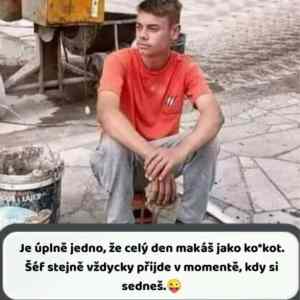 Je vidět, že tady se nedělá na normy.Normovaný člověk nemá čas ani se posadit a oddechnout.Protože nikdo nemůže plnit na víc než 105%, jinak je to špatně nastavená norma a nikdo nemúže říci, že splnil normu a tak odpočívá.Když se nesplní normy, první měsíc výhružný dopis, druhý měsíc vyhazov. |