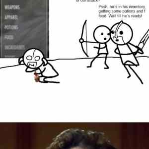 Ze se to stopne pri prolezani inventare by ani tak nevadilo, ale ze stihne sezrat nekolik desitek kusu potravin behem boje uz je kapku nerealne |