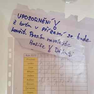 | A v pátek: "Upozornění! V bytě v přízemí bych rád kouřil. Prosím zavolejte hasiče! Děkuji." | ||