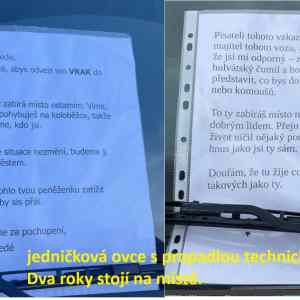 jsem OP: Je to malé parkoviště (30 parkovacích míst) před 2 vchodovým 12 patrovým panelákem. a kolem jsou další paneláky. míst je orpavdu málo. Tohle je jeden ze tří aktuálních vraků, které tam jsou. Jeden je po zemřelém sousedovi. Další je tahle ovce frajera co jí používá jako skladiště a jinak se tu prohání po sídláku na elektro koloběžce. Zodpovědnost má v píči. Kolem oktavky už na asfaltu roste mech akapradí. Parkovat není kde. Není to jeho soukromé parkoviště ani vrakoviště. |