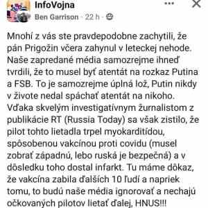 Vy to zesměšňujete, ale je to pravda. Pilot dostal infarkt, bylo to kvůli západní vakcíně, puklo mu srdce a byla to taková prda, že to tomu letadlu urvalo křídlo a nadělalo to do něj takové malé několikacentrimetrové dírky. |